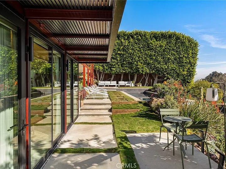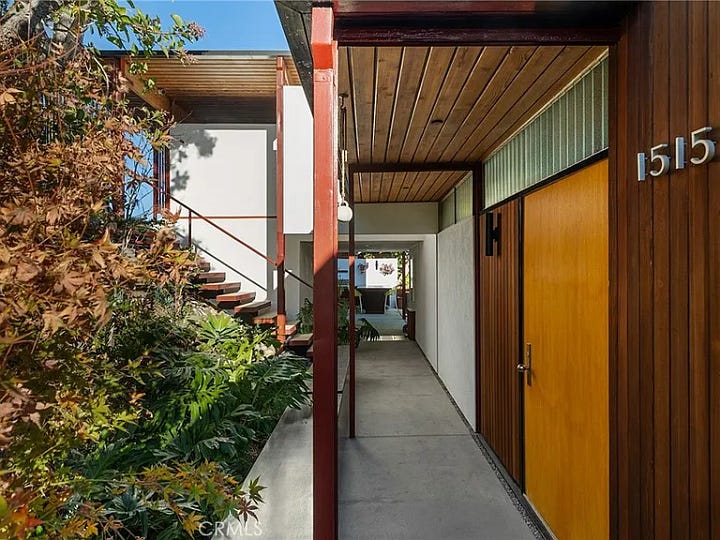 Craig Ellwood’s Bryon Lamar Johnson House is for sale for a whopping $6,295,000. Located at 1515 North Tigertail Road in the Brentwood, the home was designed by Ellwood and completed in 1953, the same year as Case Study House #16 (Saltzman House). It sits at the top of Crestwood Hills on a downward sloping lot.